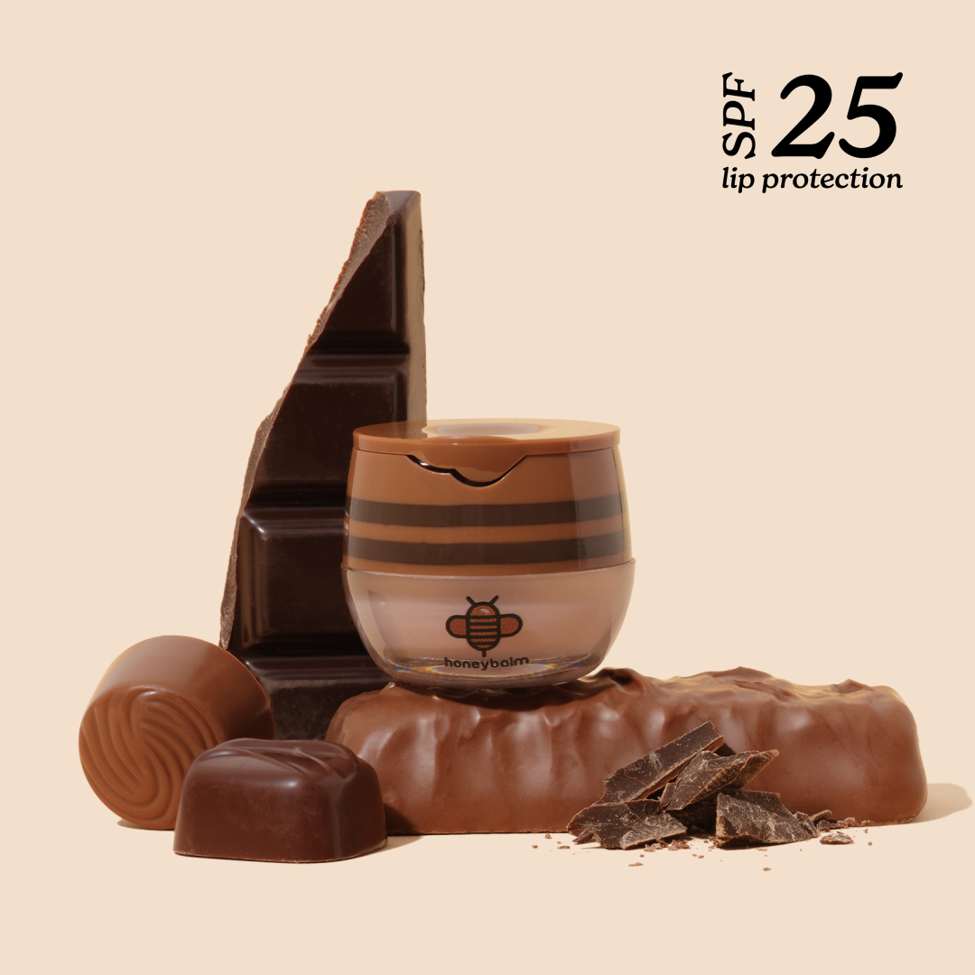 Ethylhexyl palmitate, tridecyl trimellitate, caprylic/capric triglyceride, beeswax, cocos nucifera (coconut) oil, aloe barbadensis leaf extract, olea europaea (olive) fruit oil, hydroxystearic acid, tocopherol (vitamin e), hydrogenated styrene/isoprene copolymer, phenoxyethanol, cacao extracts, propolis extracts, aroma CI 77491, CI 7492, CI 77499, CI 15850:2, CI 45410:1.
