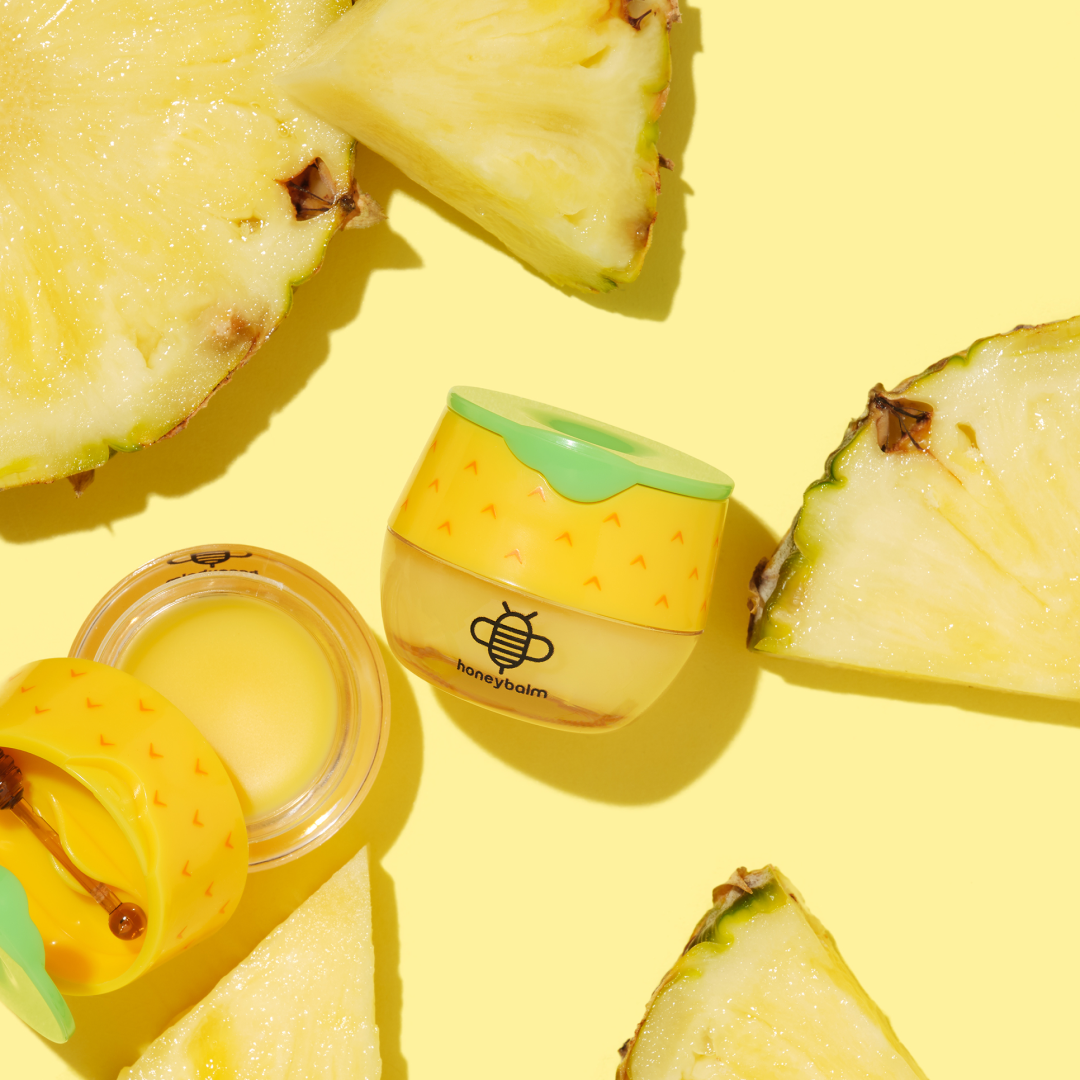 Tridecyl trimellitate, ethylhexyl palmitate, caprylic/capric triglyceride, aloe barbadensis leaf extract, beeswax, cocos nucifera (coconut) oil, olea europaea (olive) fruit oil, hydroxystearic acid, tocopherol (vitamin e), pineapple extracts, propolis extracts, aroma, CI 19140.