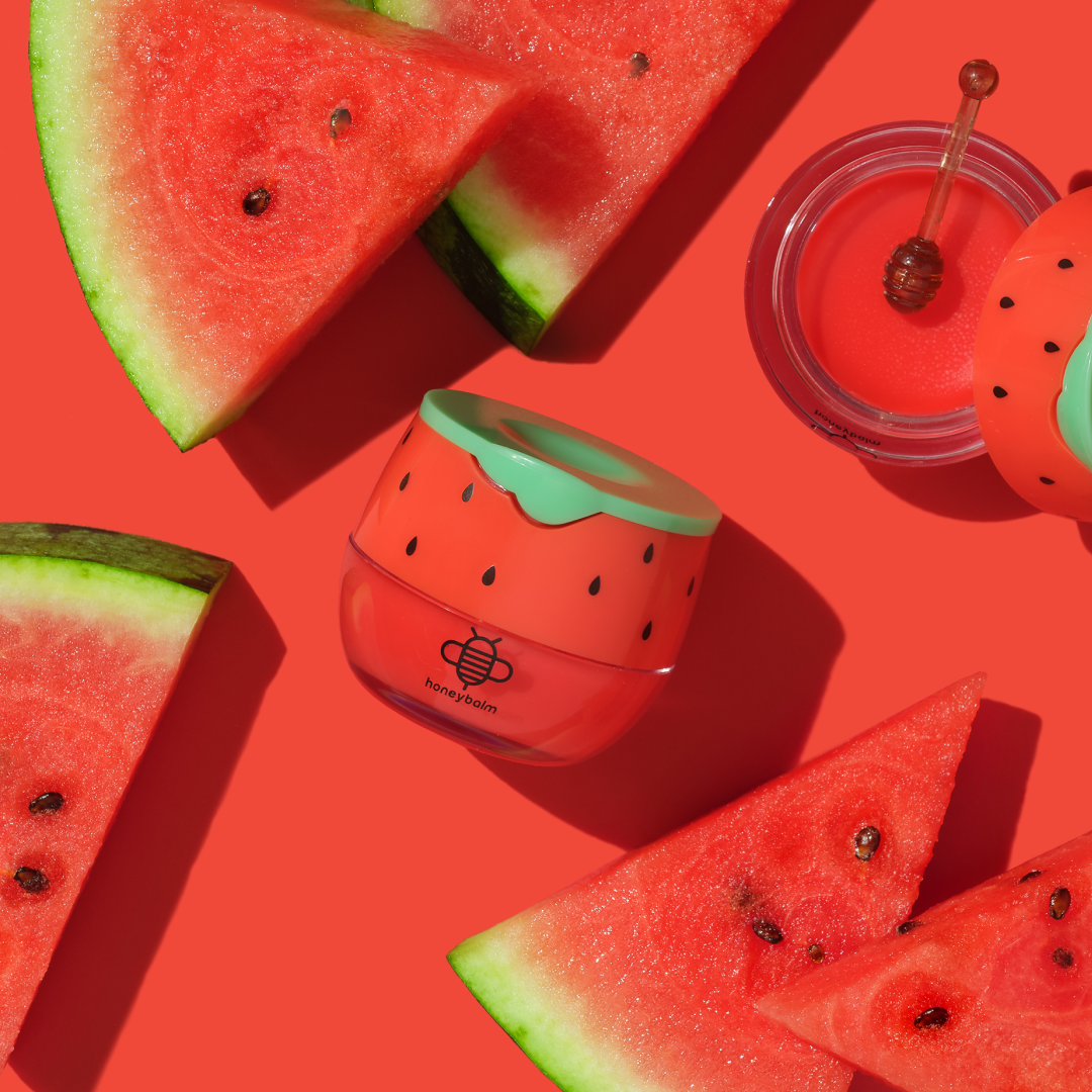Tridecyl Trimellitate, ethylhexyl palmitate, caprylic/capric triglyceride, ceresin, aloe barbadensis leaf extract, beeswax, hydrogenated styrene/isoprene copolymer, cocos nucifera (coconut) oil, olea europaea (olive) fruit oil, tocopherol (vitamin e), hydroxystearic acid, phenoxyethanol, watermelon extracts, propolis extracts, aroma, CI 15850:1, CI 19140, CI 77891.